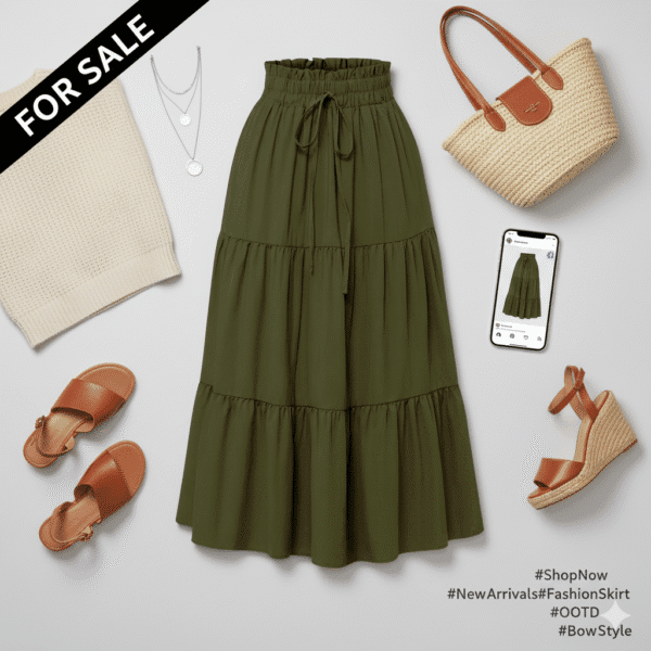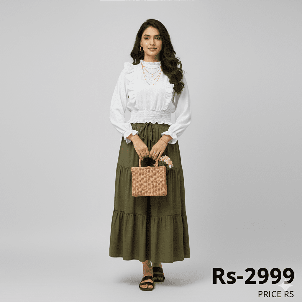 Be the first to review “Classic Chic High-Waist Skirts” green color  and Top  white”