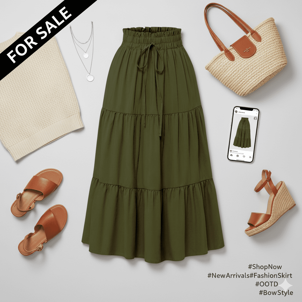 Classic Chic High-Waist Skirts” green color  and Top  white