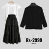 Be the first to review “combo deal black skirt +white t shirt +net coat black”