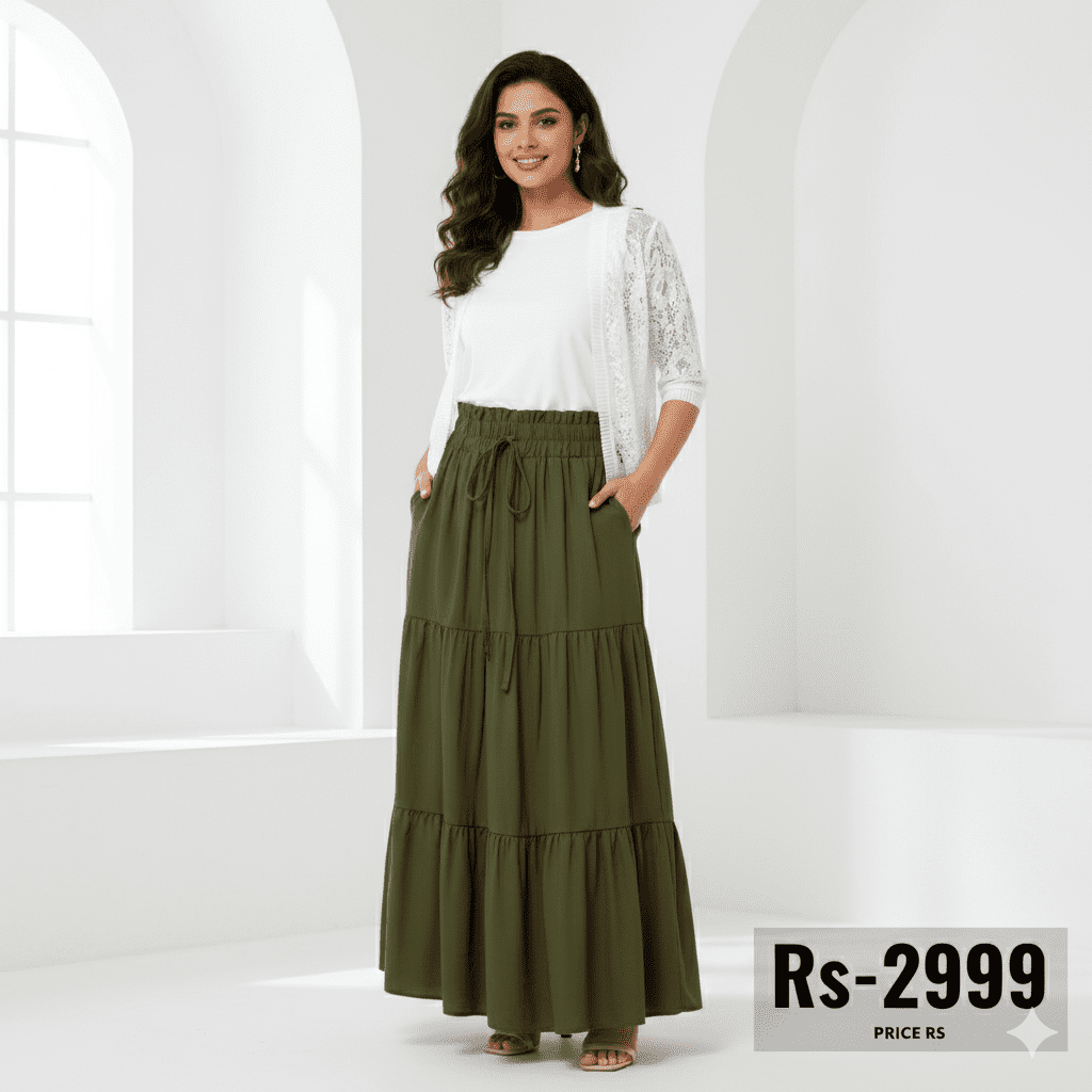 Be the first to review “combo deal green skirt +white shirt +net coat white”