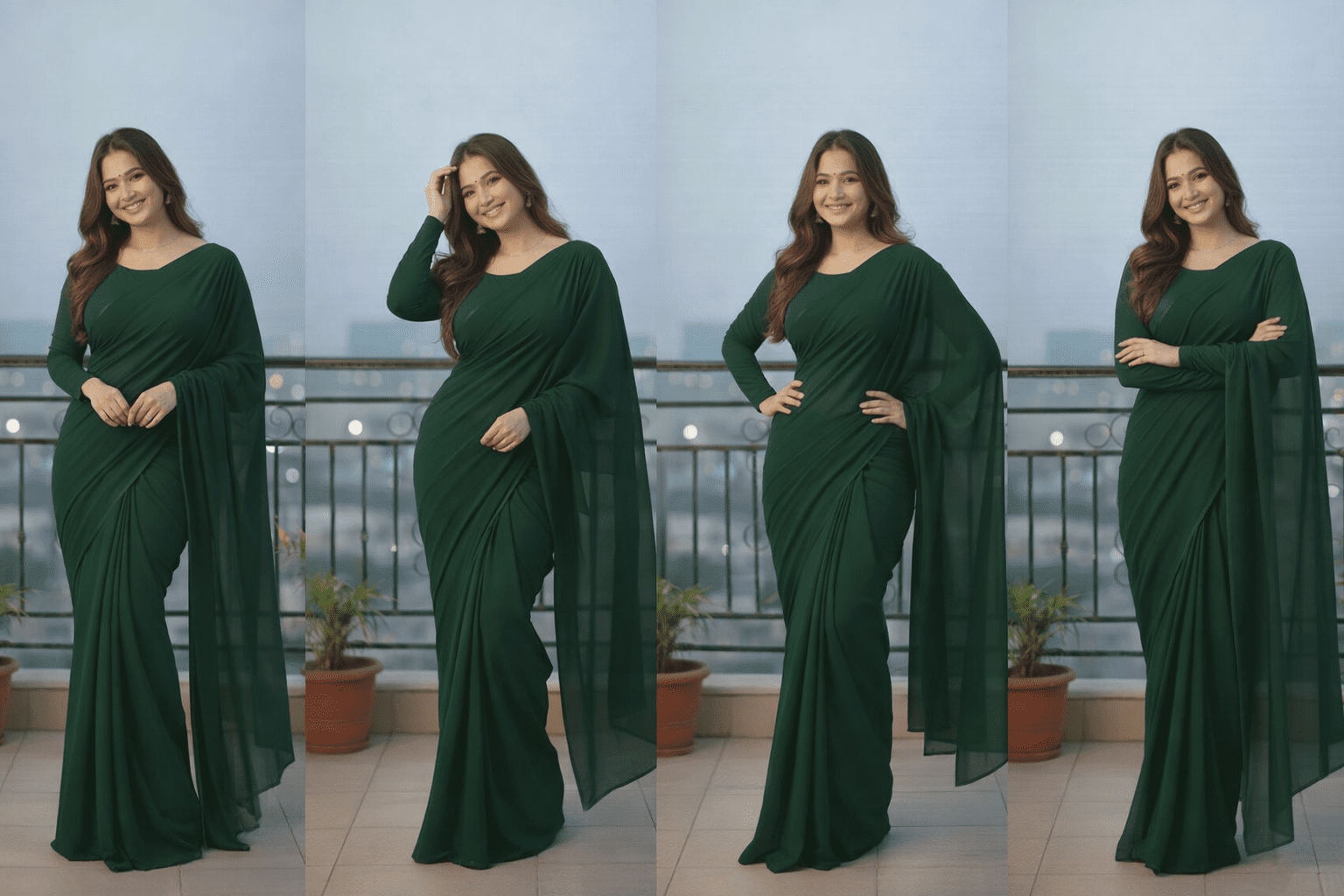 Set Includes: Blouse, Pallu & Petticoat Skirt (3 Pieces)