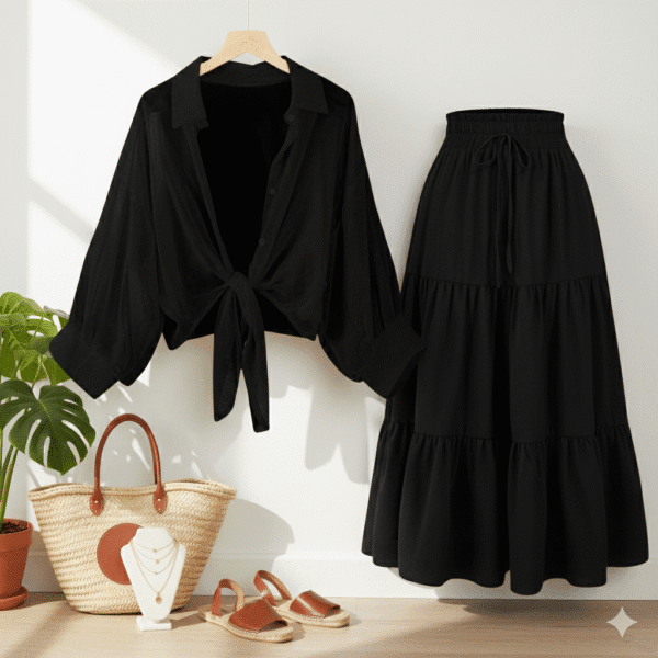 Plus Size Women Black Shirts Loose Casual Lightweight Long Sleeved Collared Tops Skin-friendly Elegant Clothing & Black skirt Fashion Blusa Feminina