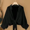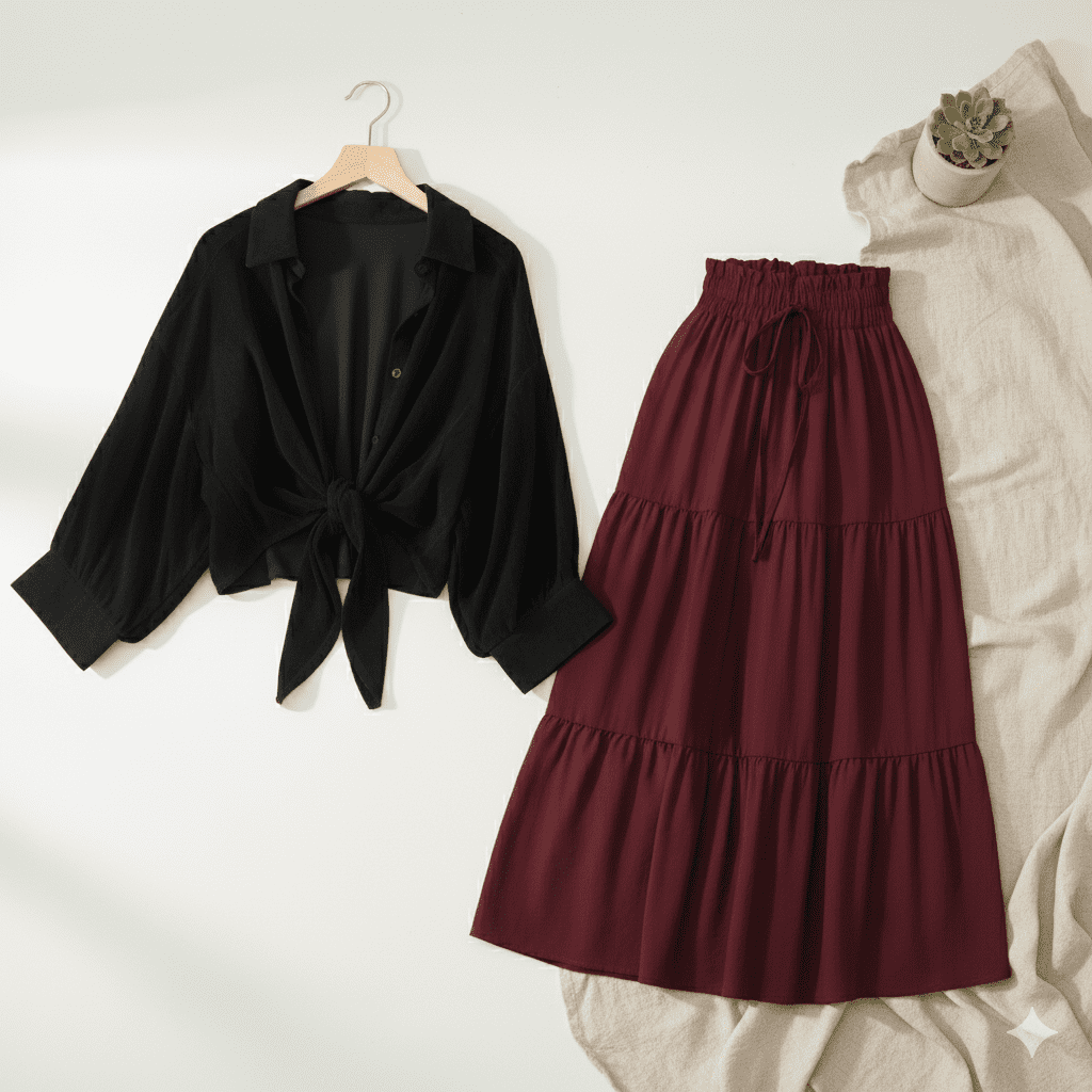 Plus Size Women Black Shirts Loose Casual Lightweight Long Sleeved Collared Tops Skin-friendly Elegant Clothing & Mehroon skirt Fashion Blusa Feminina