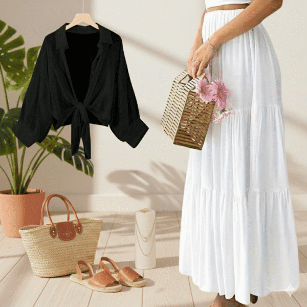 Be the first to review “Women Black Shirts Loose Casual with White Skirt”