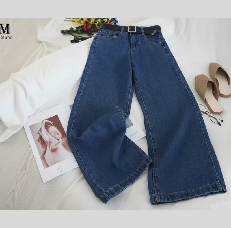 Name : Women wide leg one -Button Plain Jeans