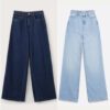 Name : Women wide leg one -Button Plain Jeans