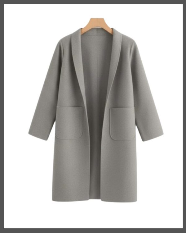 The coat features a chic open-front style with full-length sleeves, creating a flowing, elegant silhouette that flatters every body type. The relaxed, comfortable fit allows for easy movement and effortless layering over sweaters, tops, or dresses. We understand that fit is personal, which is why this coat is available in three sizes: Small, Medium, and Large. For assistance in choosing the right size, please refer to our comprehensive [size guide].