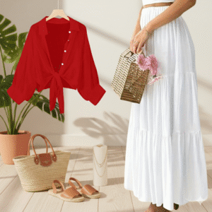 Be the first to review “Women white Shirts Loose Casual with black Skirt”