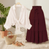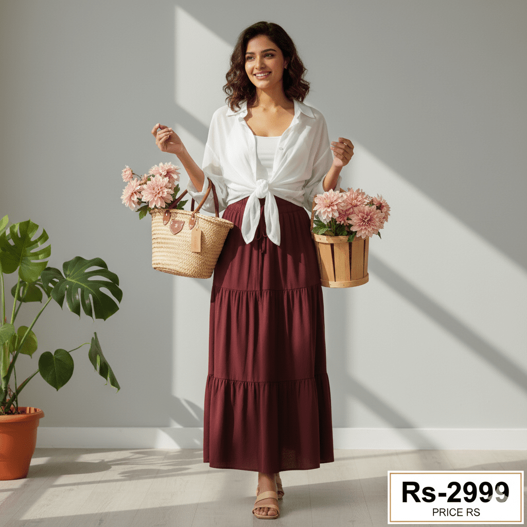 Plus Size Women white Shirts Loose Casual Lightweight Long Sleeved Collared Tops Skin-friendly Elegant Clothing & Mehroon skirt Fashion Blusa Feminina